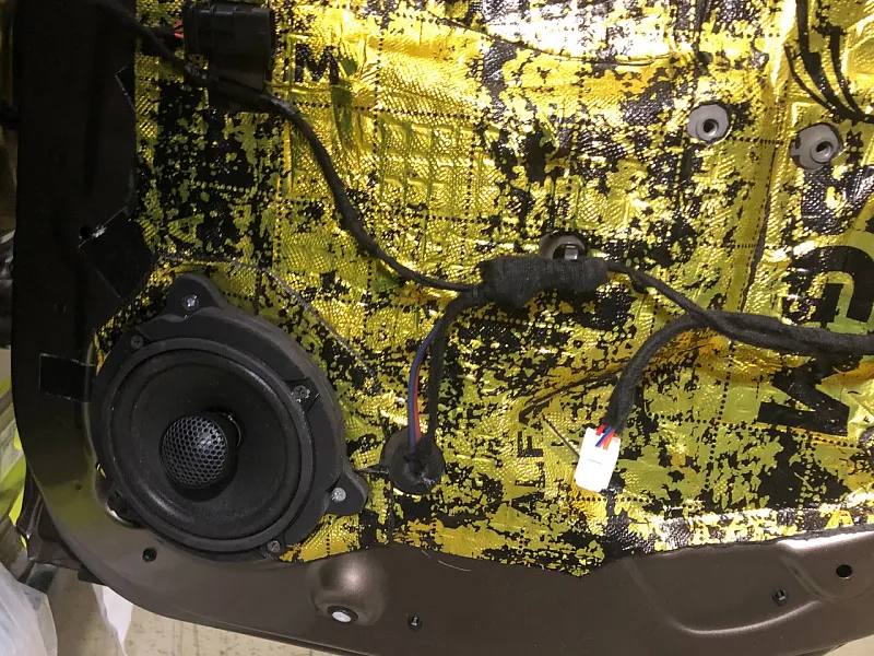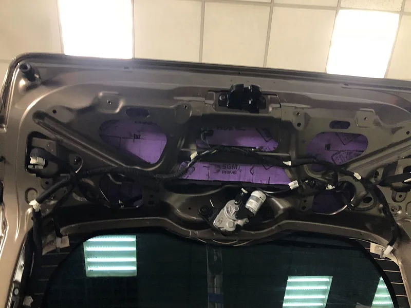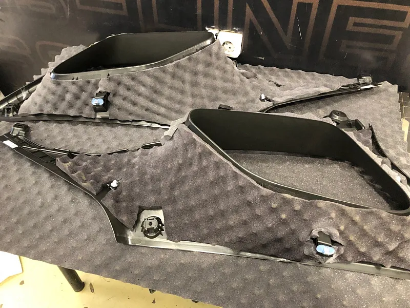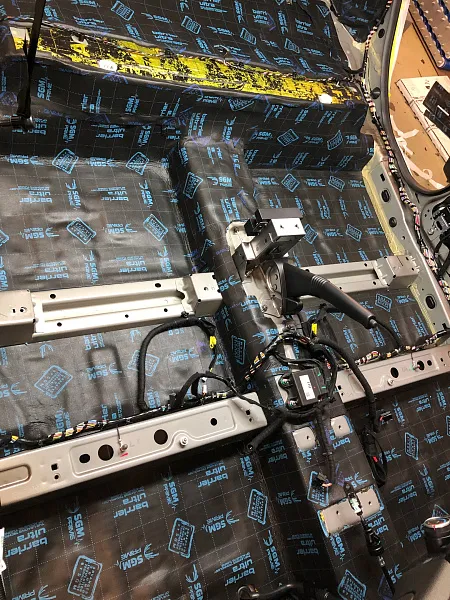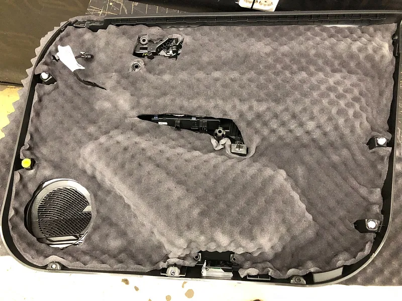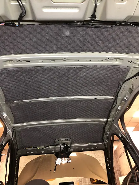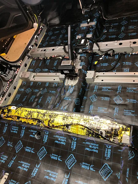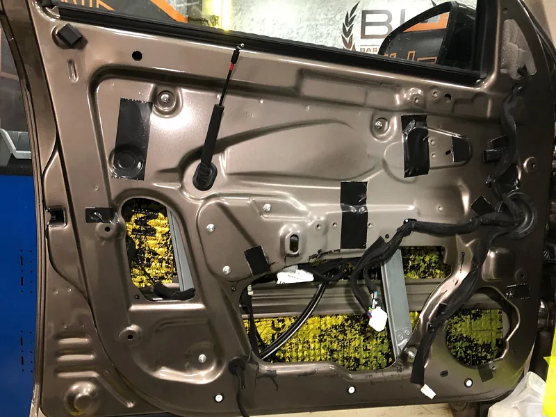 Что касается эффекта снижения общего шума, в двух словах объяснить сложно, но давайте попробуем. Ранее мы сказали, работаем с материалом по технологии, так давайте про технологию. Первым слоем всегда выступает виброизолиционный материал, он служит для снижения частоты резонанса металла “постучал по двери после шумоизоляции, звук глухой” – Это работает только в случае мастичной виброизоляции, но только ее мы и используем, поэтому о других не будем . Вторым слоем наносится шумопоглатитель, от его качества и зависит главный результат, мы используем закрытоячеистый мембранный материал, который является самым эффективным на рынке установочной линейки SGM Prime. Это своего рода симбиоз разных материалов собранных в “бутерброд”, выполняющего роль: теплоизолятора, вибродемфера, шумопоглотителя и влагозащиты. Конечные материалы это звукопоглотители “мягкие пирамидки “ данный материал наносится на все пластиковые элементы салона, в том числе на обшивки дверей. Совсем недавно в данный комплекс от производителя добавились акустические блоки. Материал размещающийся в скрытых полостях кузова, куда физически не может добраться рука мастера, тем самым, даже в центральной стойке между слоями метала, добавляется звукопоглатитель.