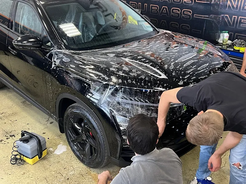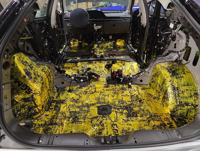 Клиент обратился к нам еще до выдачи автомобиля с автосалона. Хотелось бы выполнить полную шумоизоляции и защитную пленку для кузова. А когда не делали? Ждем автомобиль с официального дилера и сразу же преступаем.