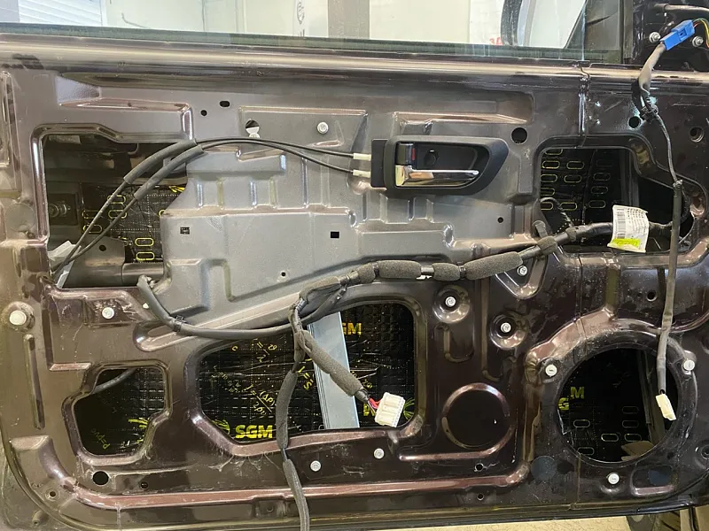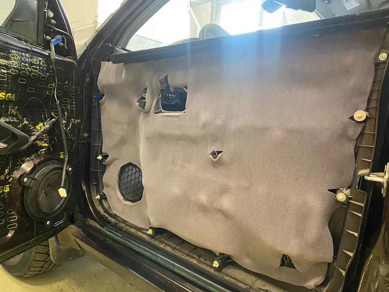 Шумоизоляция дверей самая важная процедура для получения тишины в салоне, т. к. суммарная площадь всех дверей является наибольшей среди всех остальных элементов кузова.