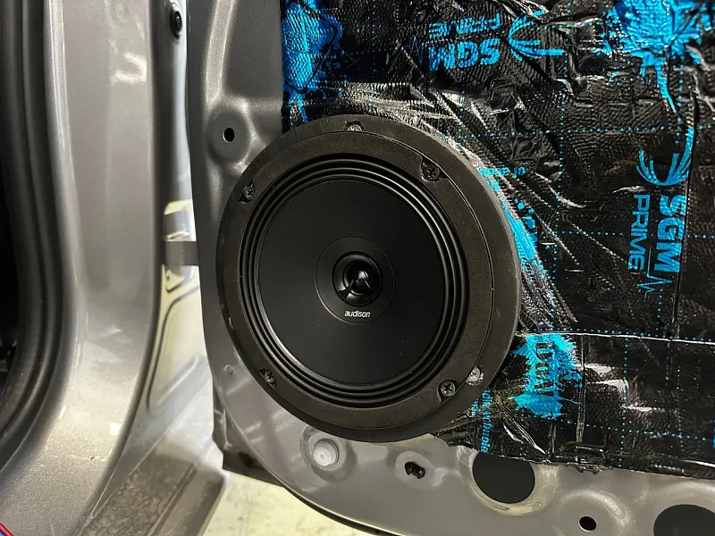 Компоненты акустической системы включают фронтальную и тыловую акустику бренда Audison. Для передних дверей мы использовали компонентные динамики Audison APK 165 2 Ohm, а для задних дверей - коаксиальные Audison Prima APX 6.5. Эта акустика позволяет получить высокую громкость системы без значительного ухудшения качества звука. Учитывая особенности серии динамиков Prima, использование сабвуфера становится необходимым. Поэтому для этого автомобиля мы выбрали высококачественный немецкий динамик Helix K 10W.