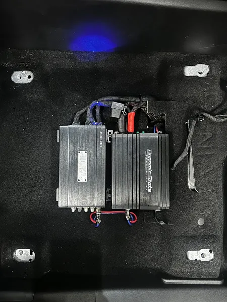 Усиление аудиосистемы: клиент будет управлять всей системой со штатного головного устройства. Чтобы настроить акустику без вмешательства клиента и компенсировать работу штатного усилителя, мы установим процессорный усилитель Hellion HAM 6.80 DSP. Для усиления сабвуферного звена мы выбрали новый усилитель от компании DST - Dynamic State SKIF SKA-700.1.