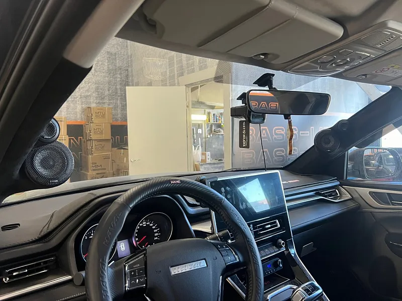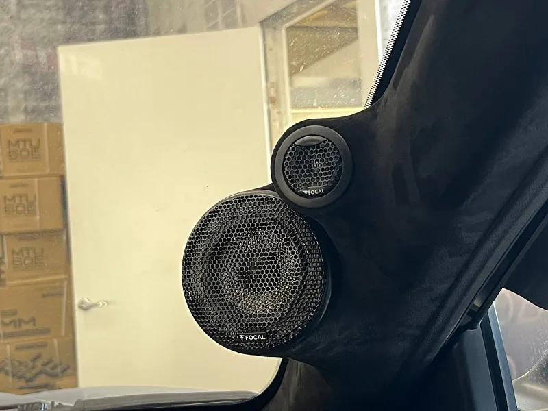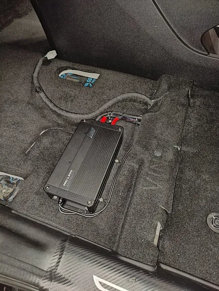 Сборка: То из-за чего 99% не могут решиться на 3х полосную акустику, изготовление стоек лобового стекла под вч/сч динамики. Без этого никуда, и если еще по эстетическим соображениям можно поспорить, то по звучанию однозначно лучшее решение для автомобиля. Мы изготовили стойки с направлением в центр воительского подголовника, и пошили в материал Дакота черного цвета. Мидбасы и коаксиальные динамики разместились в штатных местах, как и говорил раннее , шумоизоляцию автомобиля мы выполнили еще до установки системы. Процессорный усилитель и моноблок разместили под водительским и пассажирским сиденьями . Так как сигнал со штатной магнитолы не самый лучший, мы добавили выносной пульт управления процессором для удобства регулировки громкости сигнала когда телефон подключен напрямую к усилителю мимо магнитолы.