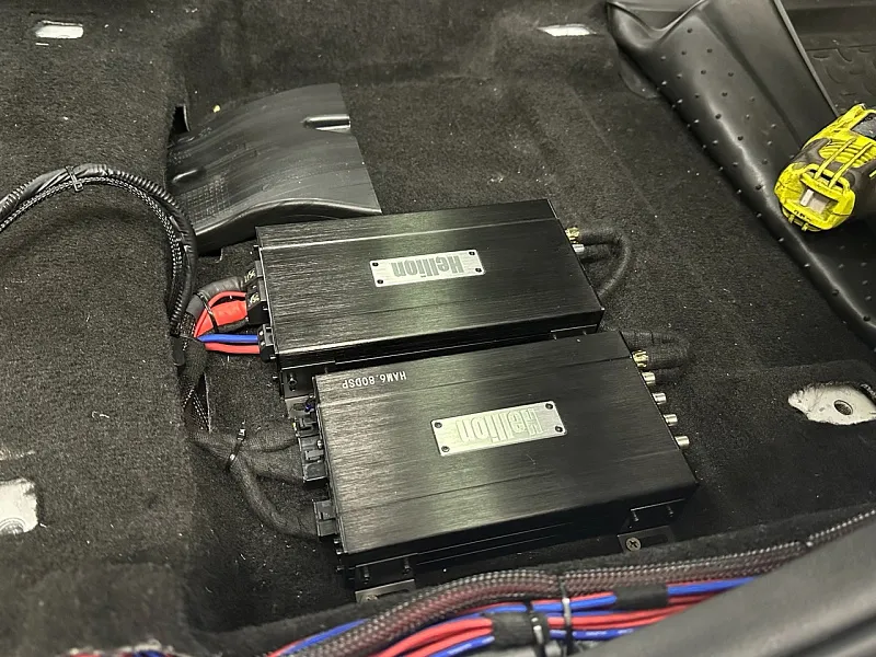 . На данный момент установленных нами усилителей данного типа перевалил за сотни, в данном бюджете без конкурентов. Еще один усилитель Hellion ham 1000.1sq установлен на сабвуферное звено. В данном усилители производитель подумал об установки в процессорные системы и добавил функцию сквозного сигнала, что позволяет настраивать его без вмешательств механических фильеров моноблока.