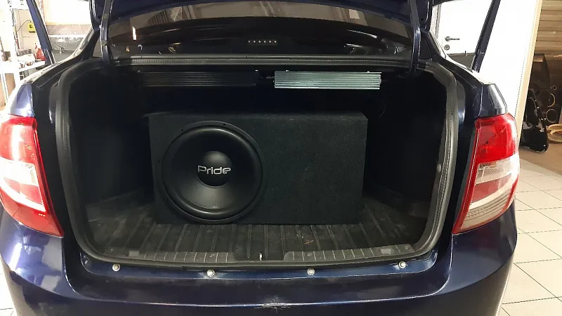 Для качественного звучания 2х полостной системы без правильного сабвуферного звена не обойтись, багажник гранты позволяет разместить любой сабвуфер "хоть 18ху", и так как в нынешних реалиях картошку все же покупают в магазине, а не привозят с бабушкиного огорода за 500км от города то багажником можно и пожертвовать для хорошего баса. Наш выбор остановился на 15 диаметре Pride Junior Pro по "мягкости" баса это лучший вариант за свои деньги и если правильно подобрать моноблок не жадничая деньги на желаемые ваТТы то вы будите приятно удивлены что может данный сабвуфер, мощности мы не пожалели, но и бюджет немного ограничен в решении этой задачи помог моноблок Avatar c заявкой 1500вт в 1ом для джуниора более чем достаточно.