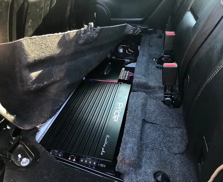 -Усилители, выбор усилителей был исключительно из-за их надежности и нужной нам мощностью,Pride Quattro plus встал на усиление сч/вч звена, Pride Uno plus на сабвуферное звено.