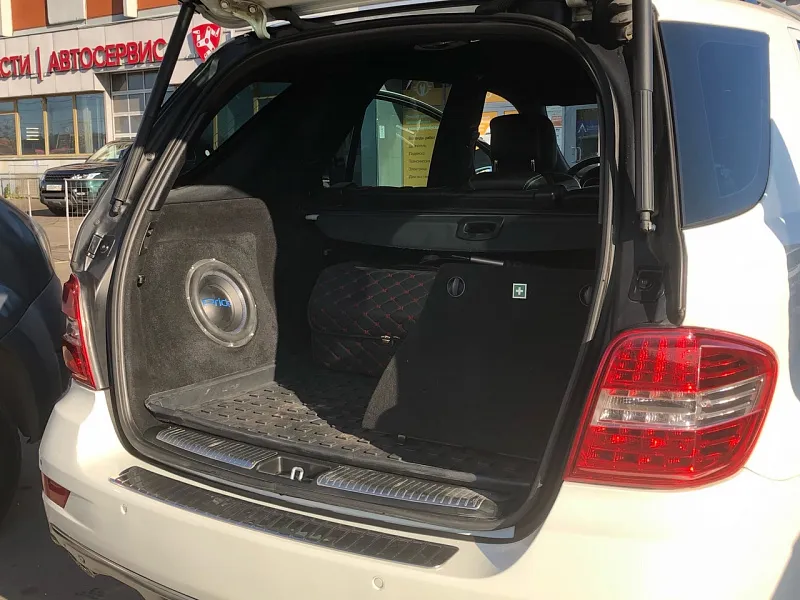 Mercedes Ml W164 на комплексное улучшение аудиосистемы, автомобили данной марки тех годов еще не испортили аудиосистему дизайном и акустика установлена по тем местам где и должна, ну или там где мы привыкли, да и звучание у нее не самое плохое, но все же если за рулем меломан то хочется лучше!