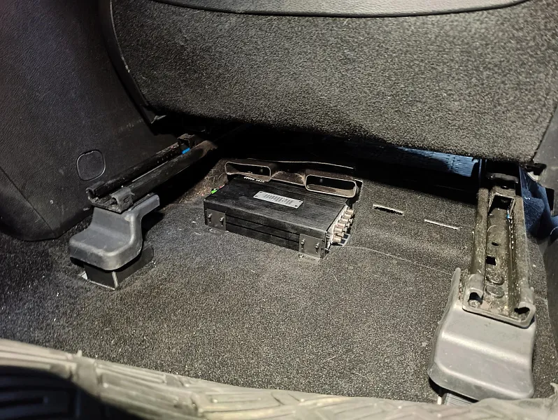 Усилитель размещается скрытно, чаще всего под сиденьем, чтобы сохранить штатный внешний вид салона и не занимать полезное пространство.