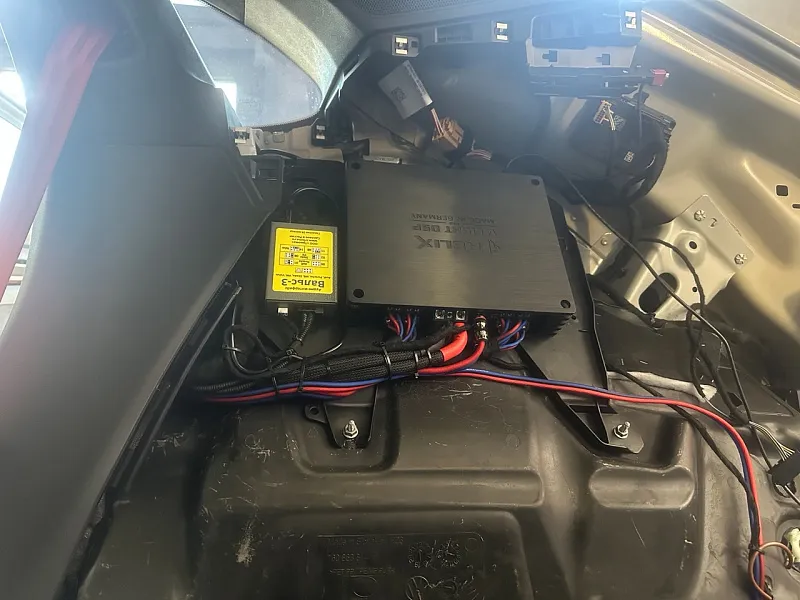 Процессорный усилитель Helix V-Eight DSP mk2 – ничего надежнее и качественнее для гражданской аудиосистемы не существует, это лучший усилитель! Несмотря на сложность новой системы, управлять ею будет штатное головное устройство, и, забегая вперед, никаких изменений в салоне автомобиля не будет. Аудиоинтерфейс Вальс-3 позволит подключить наш процессор к системе Porsche по цифровому сигналу для максимально чистого звучания!