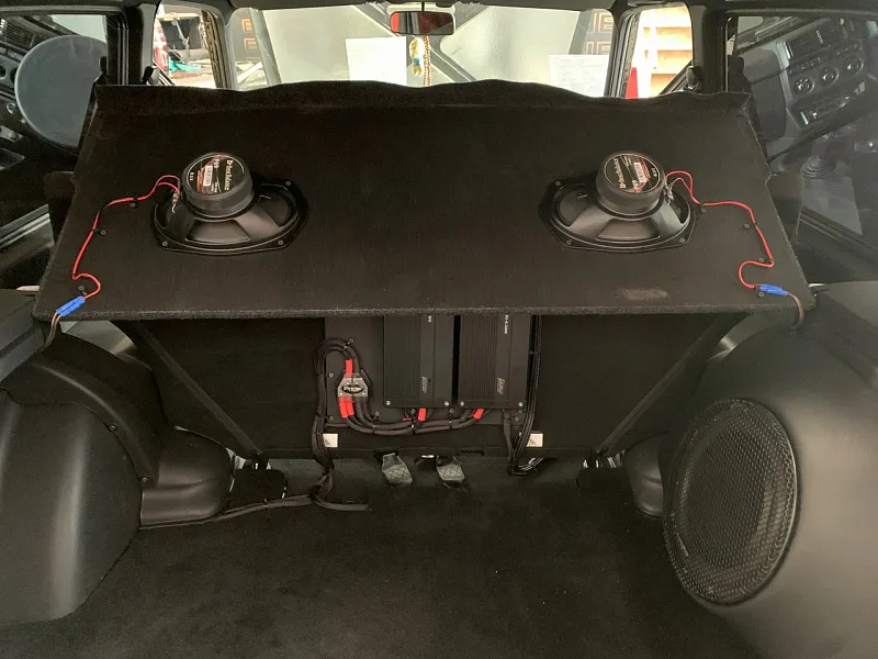Для установки тыловых динамиков была заменена заводская полка багажника на акустический вариант, рассчитанный на установку динамиков размером 6x9 дюймов.