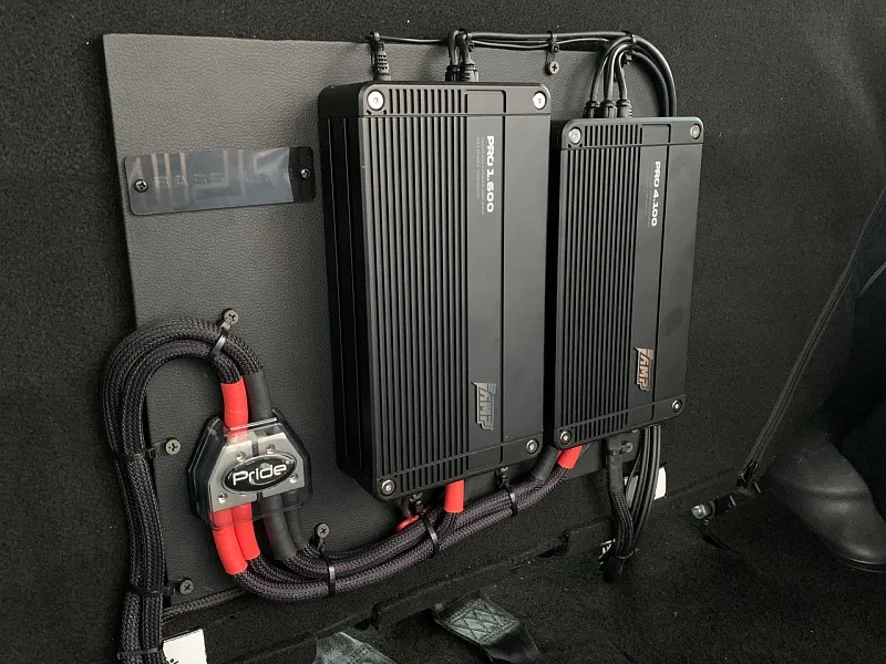 В качестве усилителей мы выбрали пару моделей бренда AMP линейки PRO. Эти усилители отличаются надежностью, компактными размерами и доступной стоимостью, что идеально подходит для наших целей. Мы используем их для усиления звука на акустике AMP PRO 4.100 для передних динамиков и AMP PRO 1.600 для сабвуфера. Благодаря этим компонентам, звучание аудиосистемы становится более насыщенным и глубоким, полностью раскрывая потенциал выбранных акустических систем.