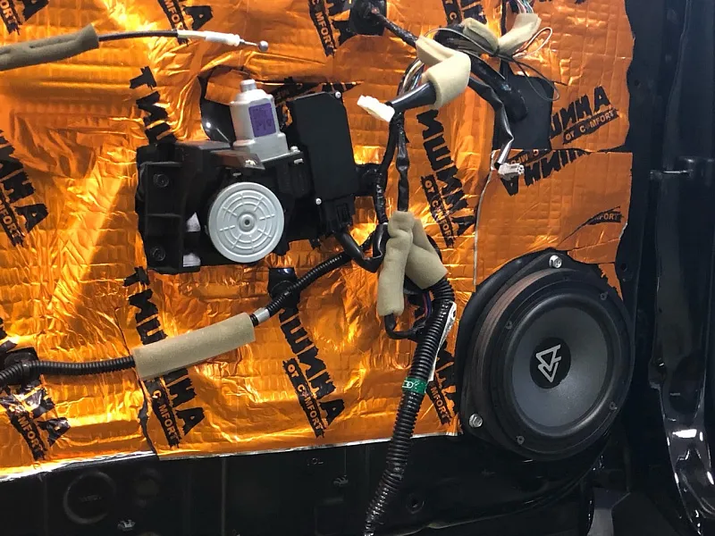 Вердикт: Под замену все среднечастотники, к шумоизоляции так же возникают вопросы, мастичный состав виброизолятора не работает вовсе, внутри двери зачем-то наклеен теплоизолятор, к шви материалам у владельца авто претензий нет.